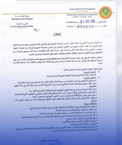 أعلنت وزارة الصحة،يوم أمس الجمعة، عن فتح باب إيداع ملفات الترشح للتكوين المُعَوَّض في مدارس الصحة