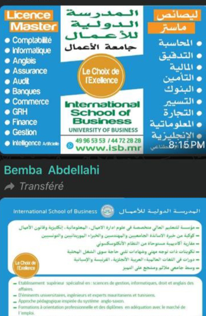 نلفت انتباه جميع الآباء والأمهات ووكلائهم أن جامعة الأعمال ، المدرسة الدولية للأعمال ، تفتح أمامهم التسجيل في المرحلة الليصانص ، الماستر ، علما أن هناك تخصصات مهمة منها :